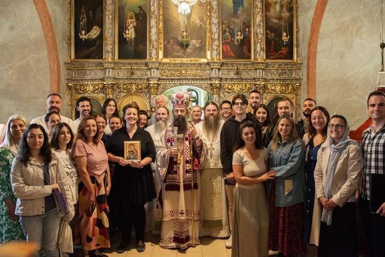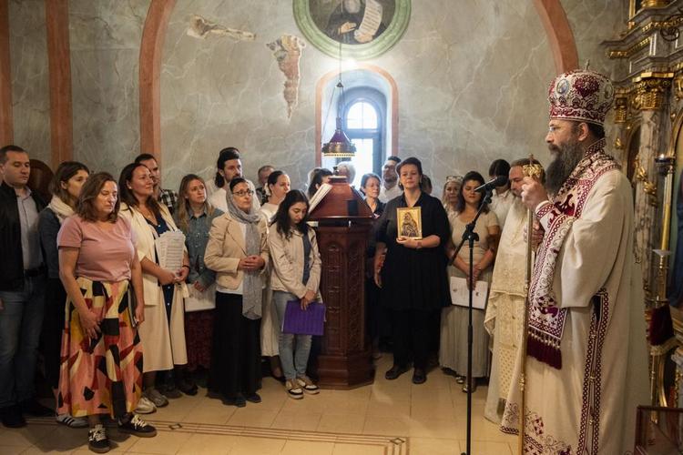 У празничној беседи владика је најпре поздравио госте хористе и честитао им на успешном наступу на Мокрањчевим данима. У знак благодарности на молитвеном сабрању, Његово Високопреосвештенство уручио је диригенткињи хора на дар икону Пресвете Богородице у име свештенства и свештеномонаштва, за успомену и лепо сећање.