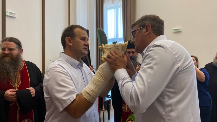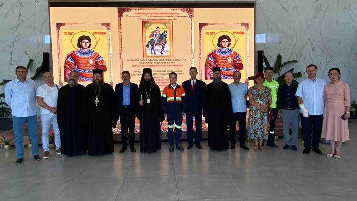 Након Свете Литургије владика је у пратњи свештеника благосиљао славске дарове у Координационом центру Рудника “Чикару Пеки”. По ломљењу славског колача владика је поздравио све запослене на челу са генералним директором компаније г. Суом Јонгдингом, изразивши благодарност на позиву и гостопримству.