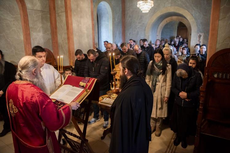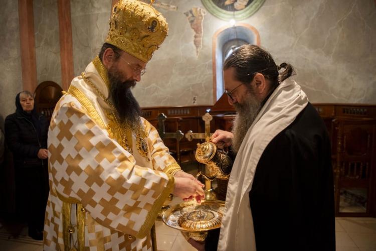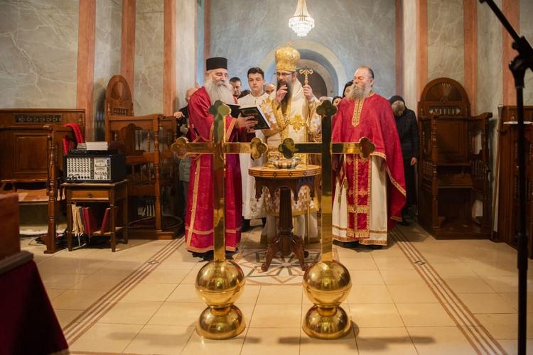 По заамовној молитви, Његово Високопреосвештенство је извршио чин освећења нових крстова за манастирску цркву посвећену Светом Николају.