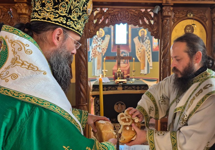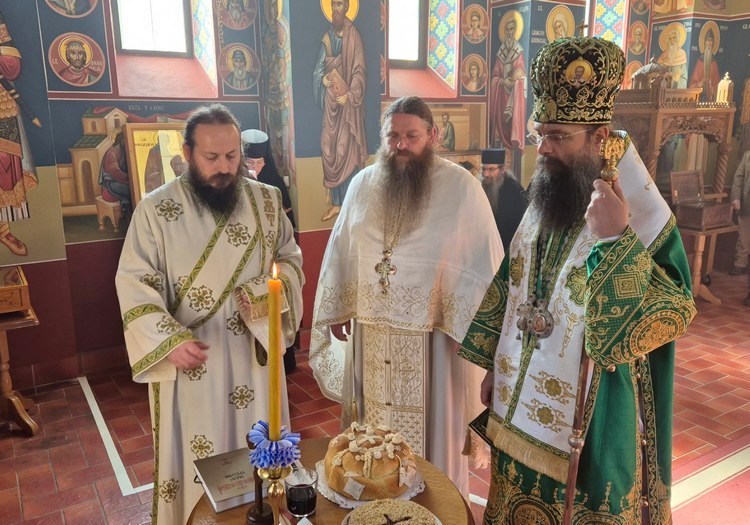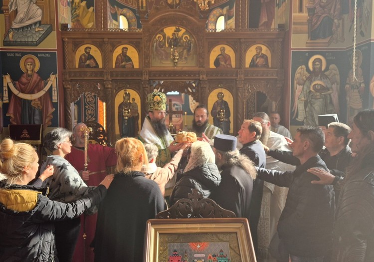 После заамвоне молитве владика Иларион је благосиљао славске дарове које је за своју крсну славу – Светог Луку пронео јерођакон Марко.