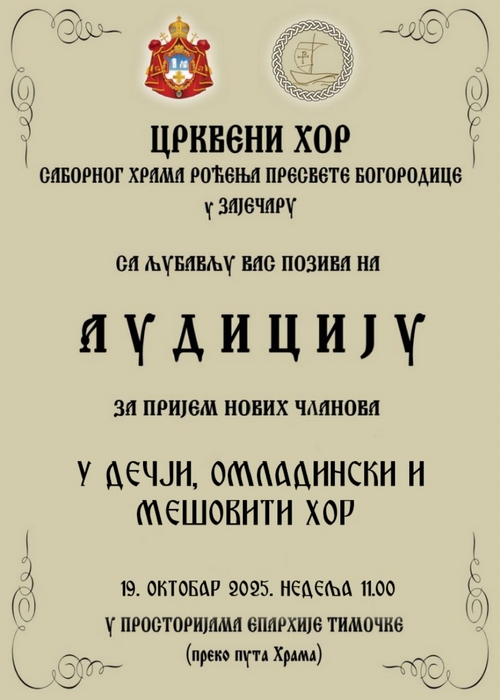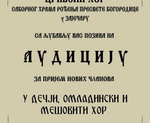 Аудиција за пријем нових чланова у дечји, омладински и мешовити хор