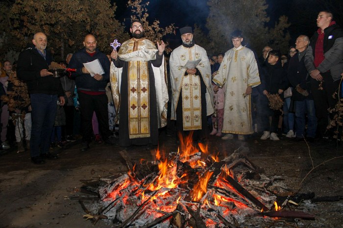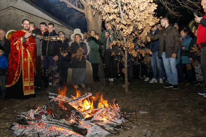 Фотографије сече и налагања бадњака: