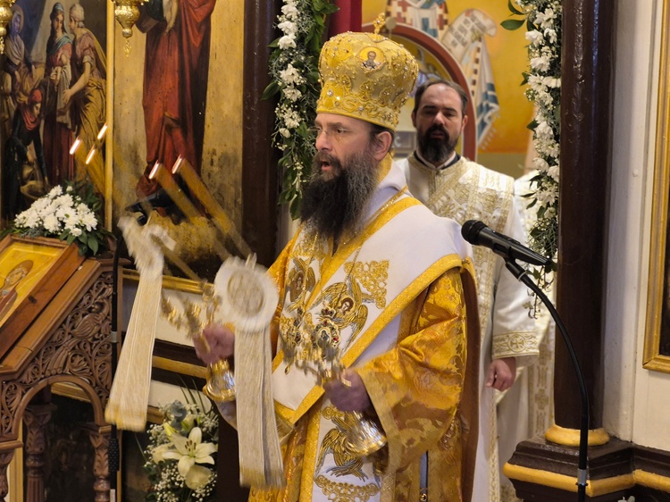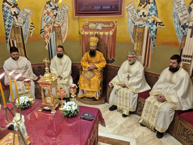 Честитајући празник свим сабраним верницима, Његово Високопреосвештенство је говорио о данашњем празнику чији сам назив указује на догађај који се прославља. Јављање Бога Оца, како истиче владика, треба да нас крепи у вери и подстакне нас да будемо ревноснији и посвећенији истинама свете Цркве, а не да слепим поштовањем обичаја потискујемо саму суштину. Владика је, даље, пожелео свима да у смирењу буду добри људи и хришћани слушајући заповести Божје и живећи по њима.