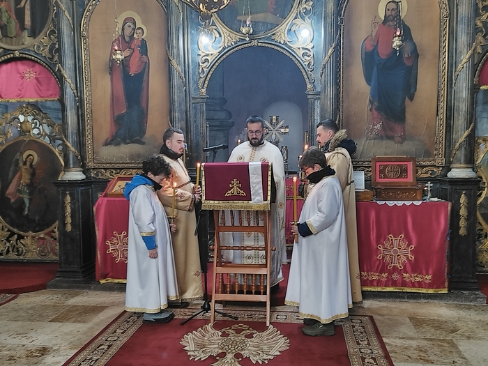 На Бадње вече, 6. jануара 2025. године, у храму Светог великомученика Георгија у Књажевцу, вечерње богослужење служио је протосинђел Захарија. Молитвеном сабрању присуствовали су и представници градских институција.