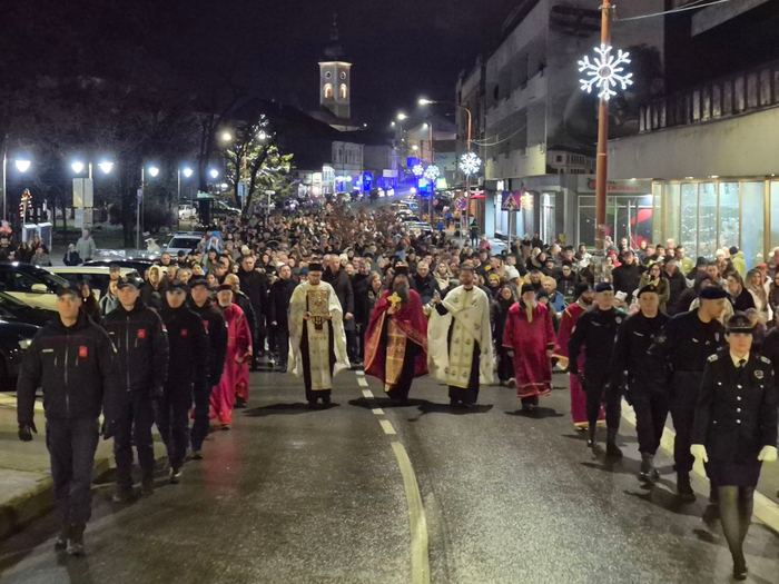 Након богослужења, улицама града прошла је свечана литија, у којој је учествовао велики број верника. Потом је на платоу испред Дома културе, уз присуство више од хиљаду верника, одржано традиционално налагање бадњака и ломљење чеснице у којој су се налазила три златника и три сребрњака.