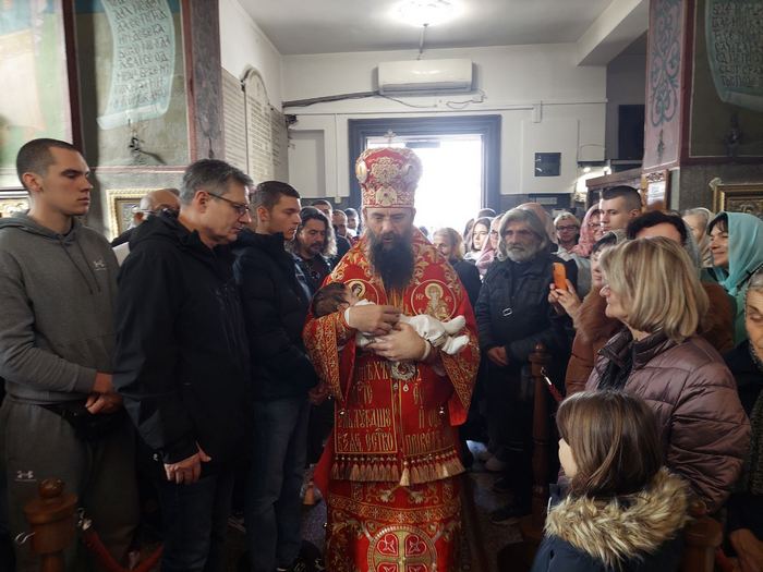 Посебну радост празнику дало је литургијско крштење малог Деспота, сина градоначелника Александра Миликића. Митрополит је у својој беседи истакао значај сабрања у Цркви и честитао родитељима новокрштеног Деспота овај благословени догађај. Говорећи о суштинским вредностима хришћанског живота, владика је поручио: