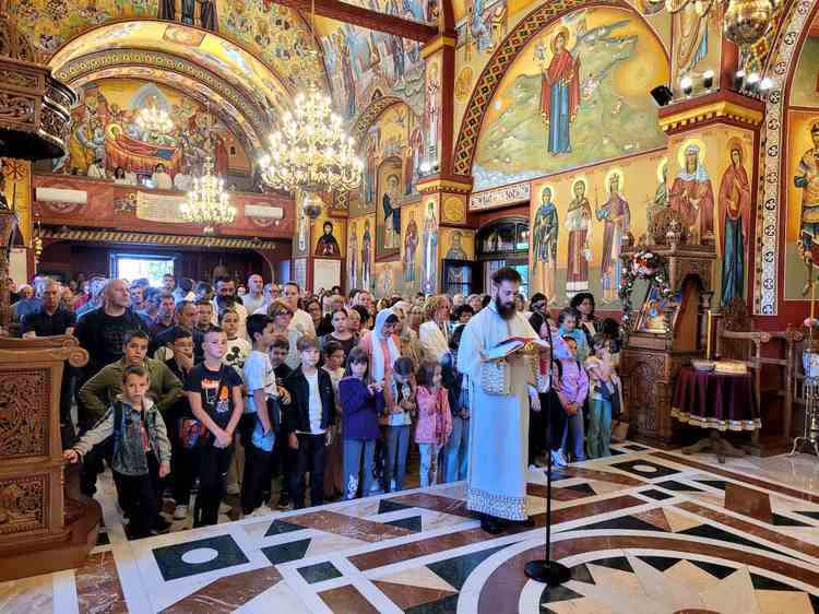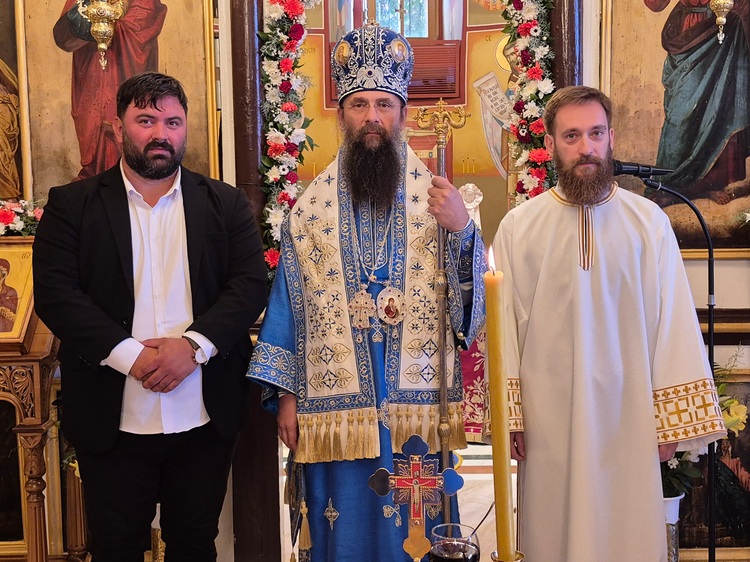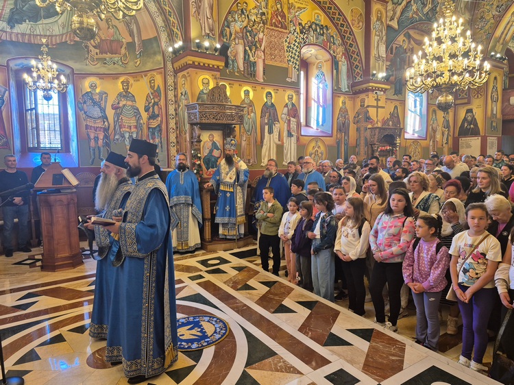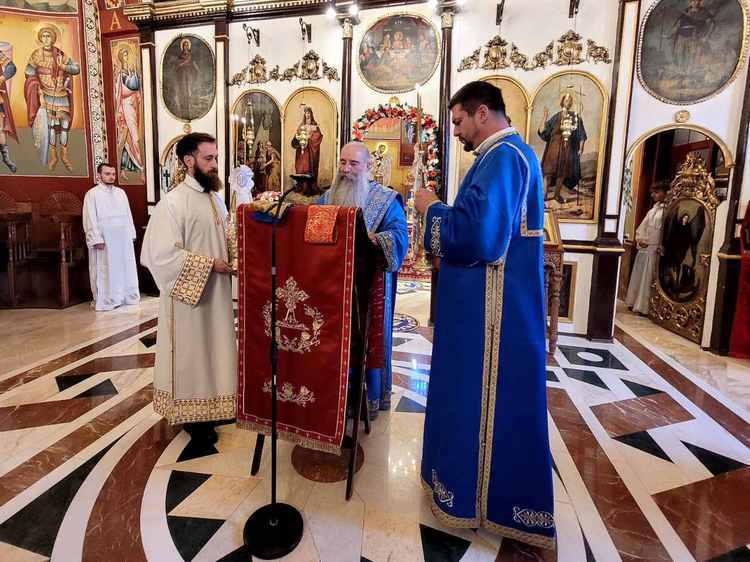 Након свете Литургије владика је благословио славске дарове, а потом повео вернике у литију око храма.