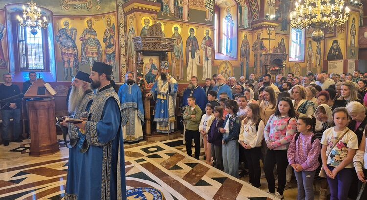 Након свете Литургије владика је благословио славске дарове, а потом повео вернике у литију око храма.