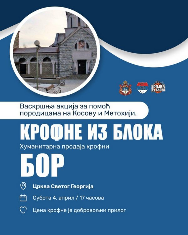Најава: Хуманитарна акција у порти храма Св. Георгија у Бору 4. априла 2026.