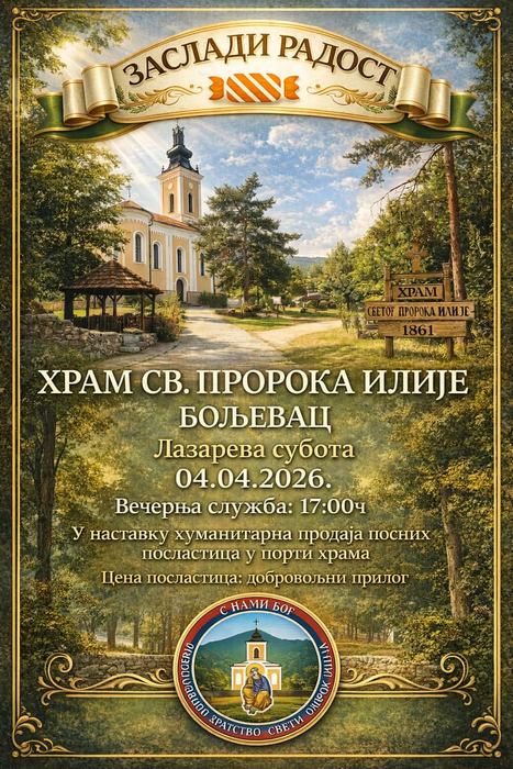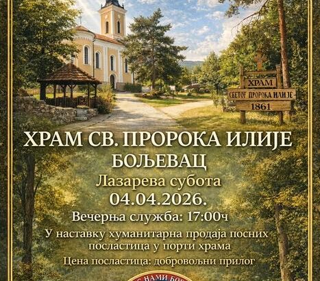 Најава: Хуманитарна акција у порти храма Св. Илије у Бољевцу 4. априла 2026.