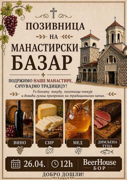Најава: Манастирски базар у Бору 26.4.2026.