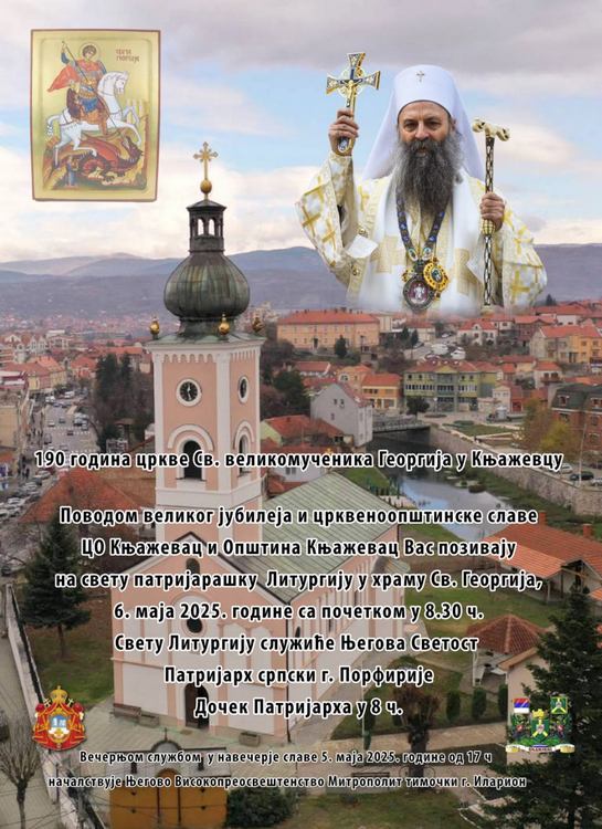 Најава: Патријарх српски г. Порфирије служи у Књажевцу на Ђурђевдан