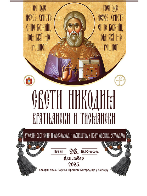 Најава: Предавање у Саборном зајечарском храму, 26. децембра 2025. у 19 ч