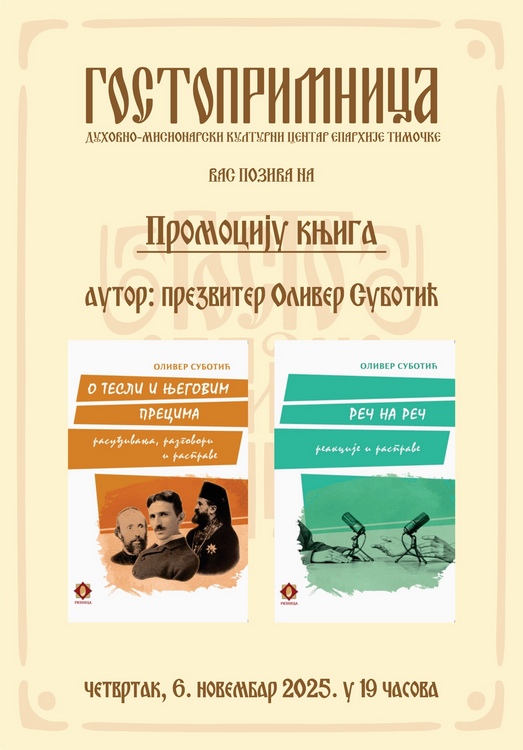 Најава: Промоција књига презвитера Оливера Суботића 6. новембра 2025. у Гостопримници