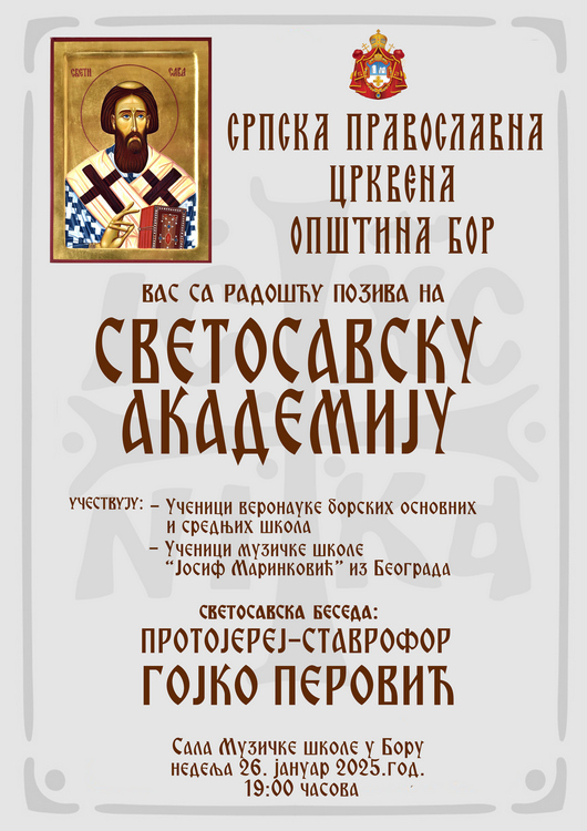 Најава: Светосавска академија у Бору