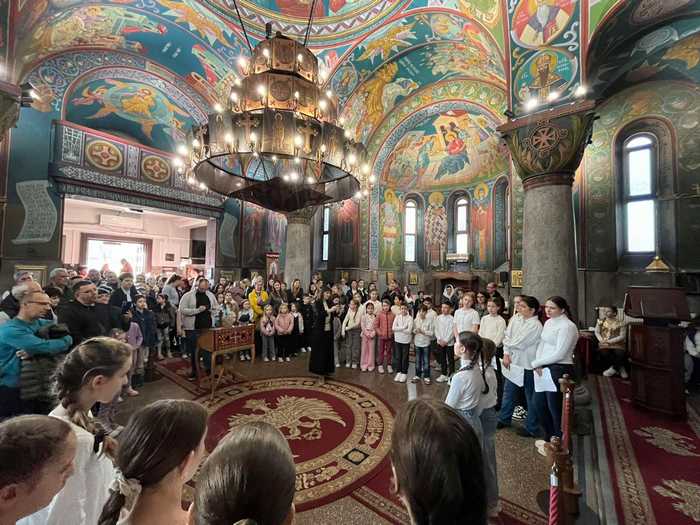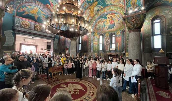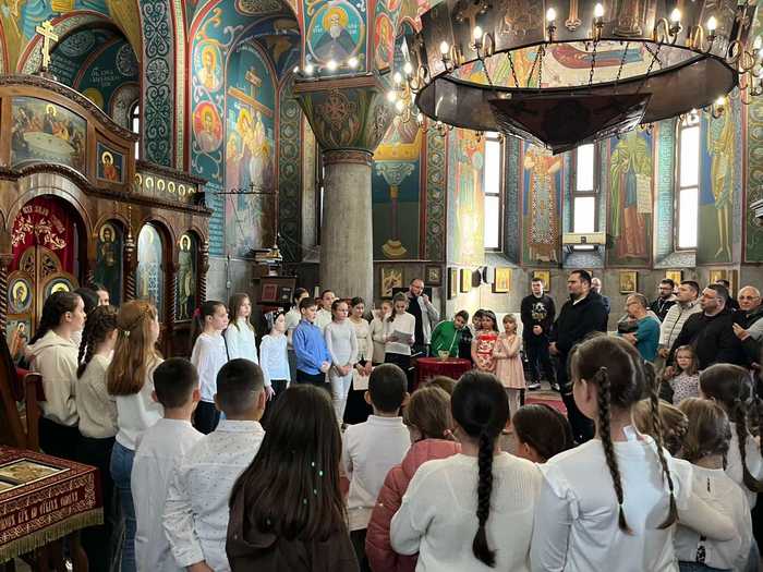 Прослава је започела пригодном приредбом у којој су учествовала деца са која похађају часове веронауке, улепшавши овај велики празник својим трудом.