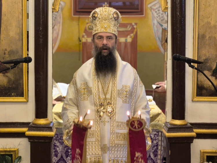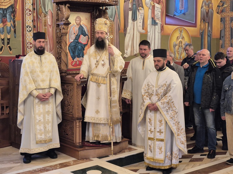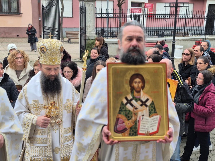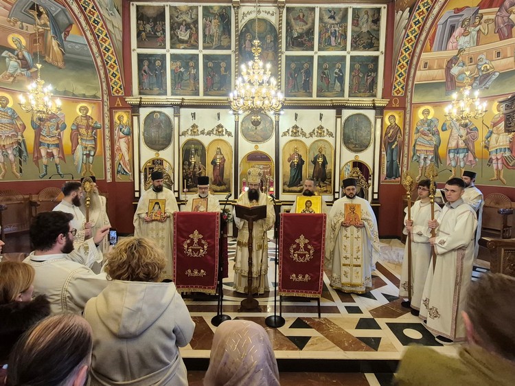Након Литургије владика је поздравио и благосиљао вернике, те их је повео у литијски опход око храма након чега је читан Синодик Православља.