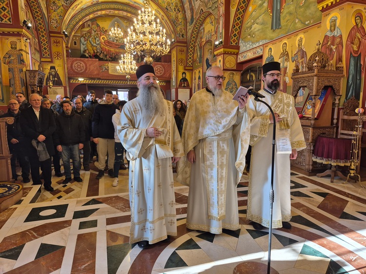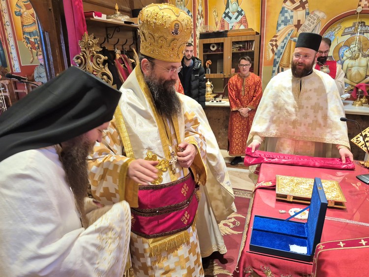 Високопреосвећеном Митрополиту саслуживали су архимандрит Козма, игуман манастира Буково, протојереји Томислав Станковић и Зоран Голубовић, протонамесници Марко Пајчин и Драган Блинџов, архиђакон Илија и ђакон Урош Памучар. Појао је Хор Саборног храма Рођења Пресвете Богородице.