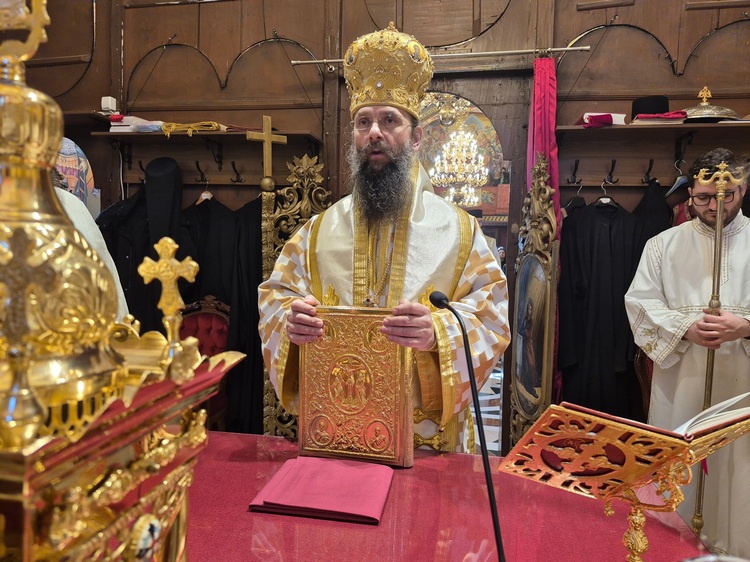 Митрополит је у беседи говорио о Светим оцима Христовим по телу које помиње данашњи Апостол и Јеванђеље појаснивши да ти текстови имају за циљ да naс утврде у чињеници да је Христос истинити човек као што је и истинити Бог и додао да, по речима Св. Јустина Ћелијског, данас Света Црква слави хришћане пре Христа, јер су ти праведни оци упућивали на Христа иако тај израз настаје нешто касније у Антохији.