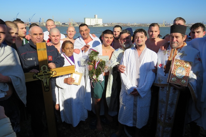 На Богојављење, 19. јануара 2025. године, након свете Литургије у храму Светог Георгија у Кладову одржано је традиционално богојављенско пливање за Часни крст.