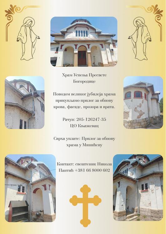 Године 2025. обележавамо 100 година од завршетка градње храма. Надамо се да ћемо у овом великом јубилеју молитвама Пресвете Богородице и уз помоћ добрих људи успети да прикупимо средства за обнову.