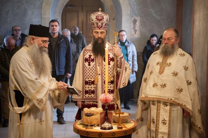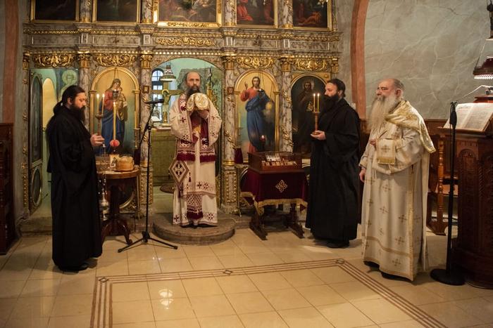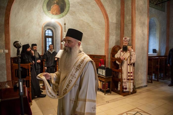 У празничној беседи, Његово Високопреосвештенство је честитао сабраном народу данашњи празник, као и имендан оцу Симеону, а потом говорио о данашњим јеванђелским поукама које подсећају да смо призвани да узмемо благи јарам Христов и пођемо за њим и тако испунимо оно највише призвање од Бога — да идемо путем који води до радосне заједнице са Господом Исусом Христом. Владика је, такође, говорио о житију Светог Симеона који се одрекао своје позиције врховног владара и отишао у манастир да буде најмлађи међу монашком браћом.