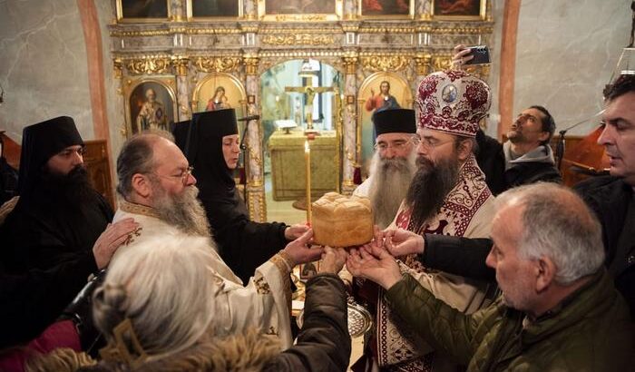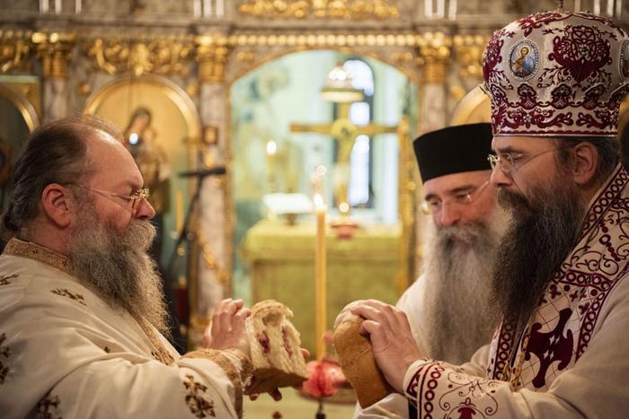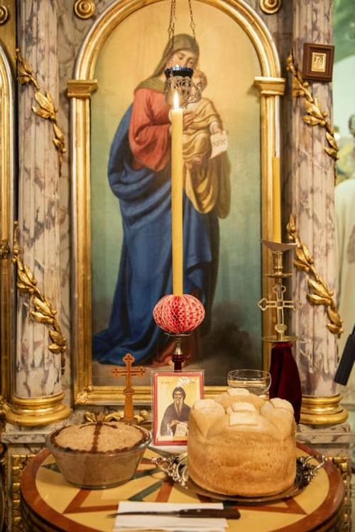 Након заамовне молитве, Високопреосвећени владика благосиљао је славске дарове које је принео отац Симеон у част свог небеског заштитника.