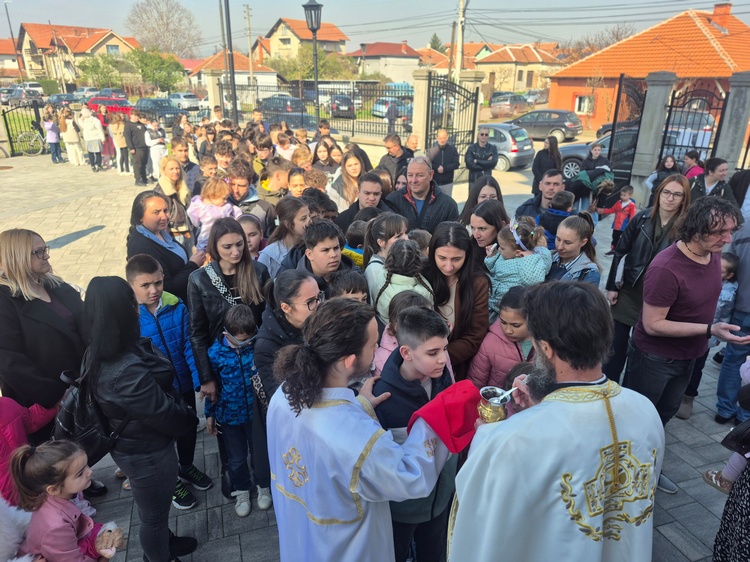 У недељу ујутру Васкршњу Литургију у храму Вазнесења Господњег у Котлујевцу служио је протојереј-ставрофор Томислав Станковић коме су саслуживали протојереј Марко Пајчин и протонамесник Драган Блинџов.