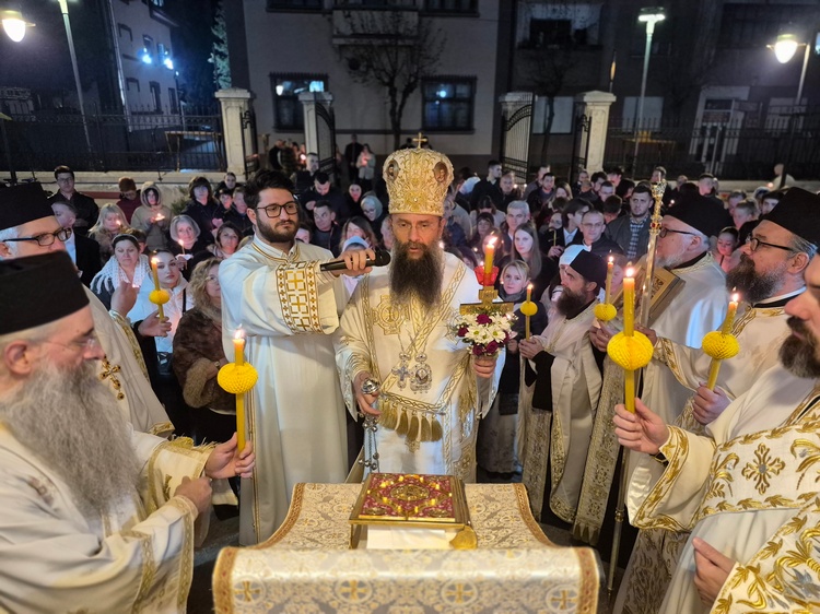 Празник Васкрсења Христовог торжествено је прослављен у зајечарским храмовима, 12. априла 2026. године. Светом архијерејском Литургијом у поноћ, у Саборном храму Рођења Пресвете Богородице, началствовао је Његово Високопреосвештенство Митрополит тимочки г. Иларион уз саслуживање зајечарских свештенослужитеља и појање црквеног хора. Васкршње посланицу Српске Православне Цркве прочитао је протојереј Зоран Голубовић, старешина храма.