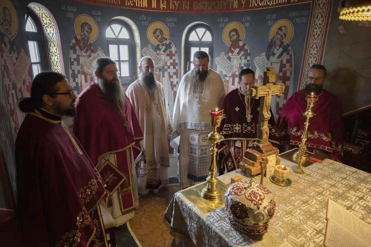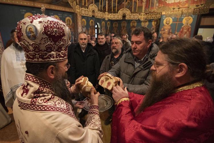 Након Литургије и резања славског колача владика је повео литију до манастирског винограда где је благословио и орезао виноград.