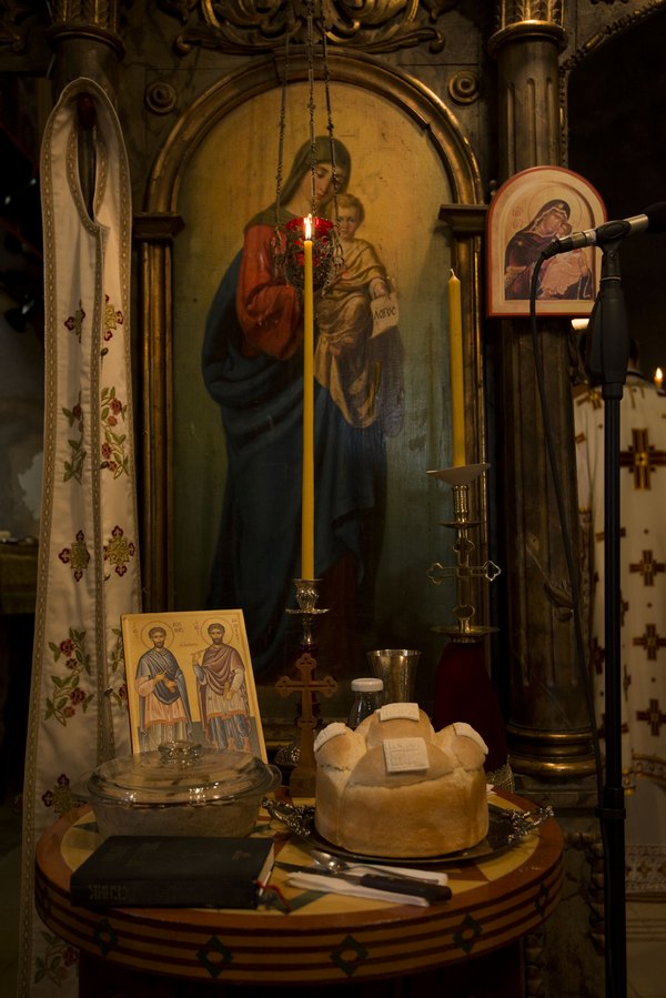 У молитвеном сабрању, којем је присуствовао велики број верника из Епархије, имендан је прославио игуман манастира Буково отац Козма. Славски колач је благословио и преломио са свечарем владика Иларион, узносећи молитве светим бесребреницима.