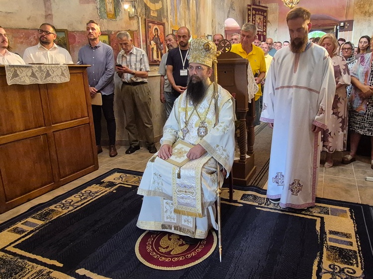 Започевши своју архипастирску беседу владика Иларион је честитао празник и храмовну славу свима присутнима. Нарочиту похвалу је упутио надлежном свештенику оцу Ристибору који је у сарадњи са члановима црквеног одбора и верним народом видно унапредио унутрашњост манастирске цркве. У наставку своје беседе владика је упозорио верне на духовну опасност од губитка страха Божјег. Сви који се често причешћују Телом и Крви Господњом, добро чине са надом на спасење и живот вечни али исто тако морају да се чувају од нечастивог, у смислу да им не украде благослов Божји на тај начин што ће одмах по изласку из храма започети са осуђивањем ближњих, свађалачким настројењем и свим оним стварима које су супротне Духу Светом. „Треба се често причешћивати али у исто време чувати себе од греха колико је могуће, чувати духовну радост у Господу“, рекао је Високопреосвећени владика.