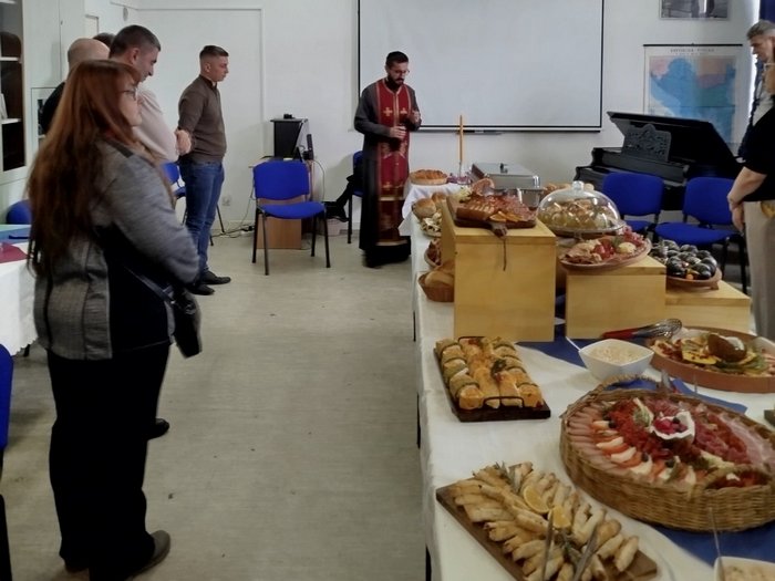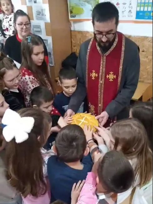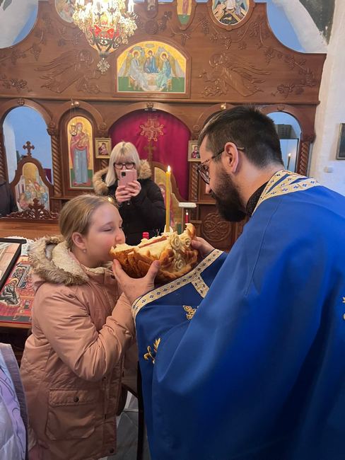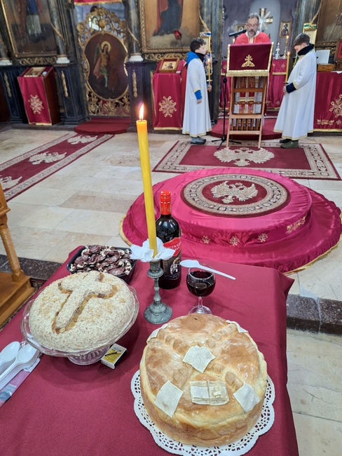 Након свете Литургије освећени су славски дарови, а заједно са ученицима преломљен је славски колач који је, поводом школске славе, ове године принела службеница школе Златомирка Првуловић, док је део колача, као залог домаћинства школске славе за наредну годину, преузела наставница биологије Даница Христов.