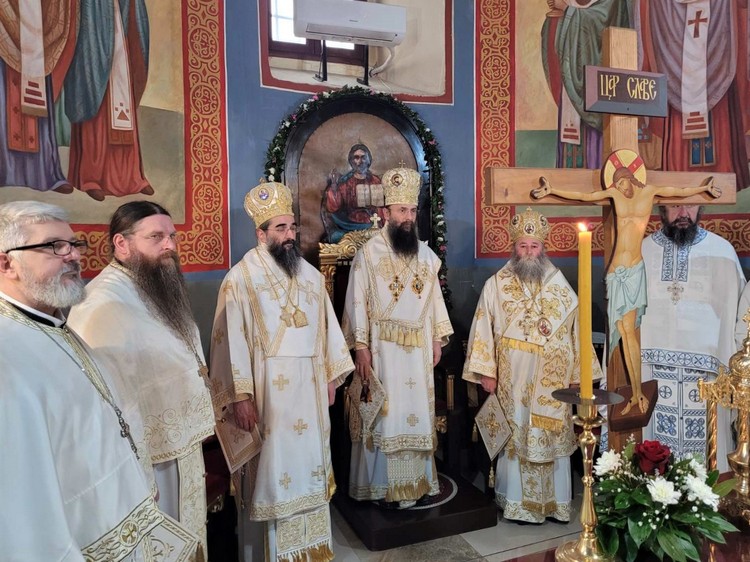 Након заамвоне молитве Митрополит брегалнички г. Иларион благосиљао је славске дарове и преломио их са Митрополитом тимочким.