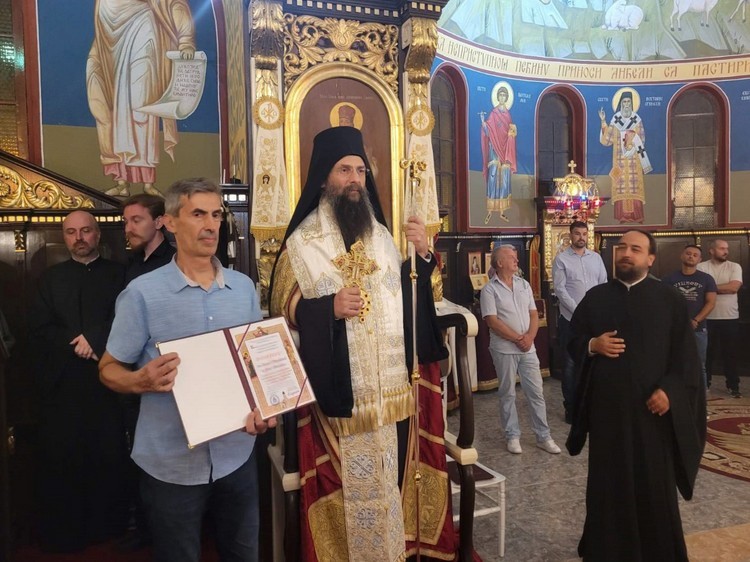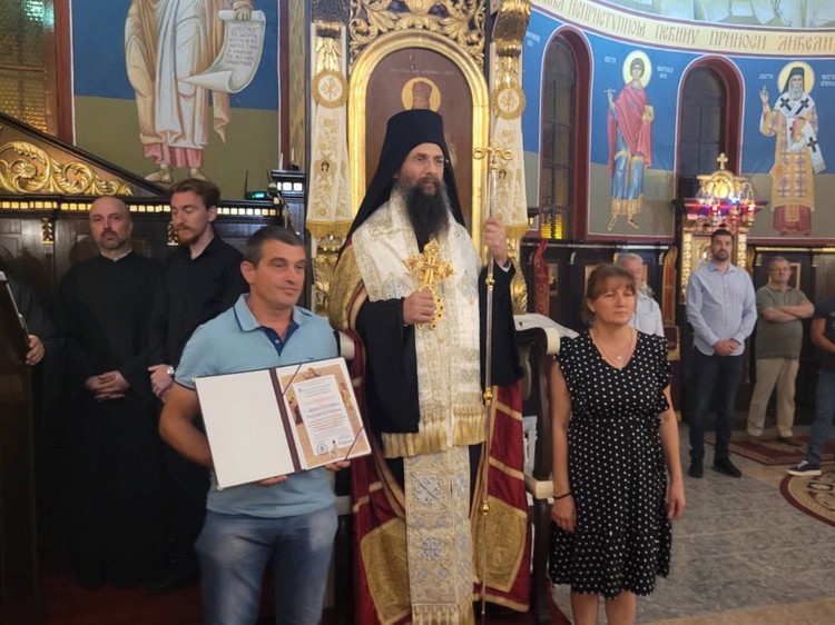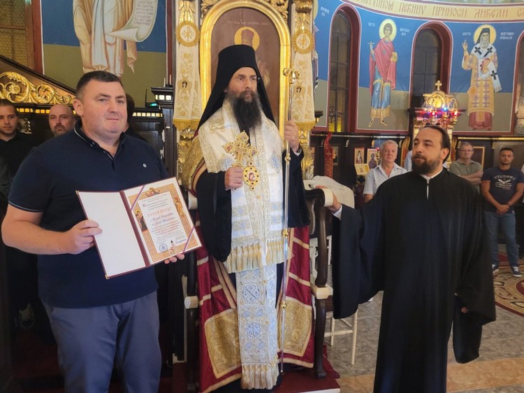 Након молитвеног хода, Митрополит Иларион уручио је архијерејске похвалнице појединцима заслужним за обнову храма, а председнику општине Мајданпек г. Драгану Поповићу, у знак захвалности, даровао је Свето јеванђеље.