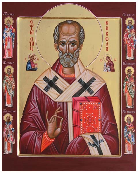 Свети и богоносни отац наш Николај чудотворац мириликијски, веома је поштован угодник Божји не само у нашој помесној цркве већ у васцелој хришћанској васељени. Овај светилник васцелог хришћанства рођен је у граду Патара у области Ликија у Малој Азији, од побожних и благочестивих родитеља Теофана и Ноне, за време римског цара Валеријана. Свети Николај је био дете које је испрошено (измољено) од Бога, будући да су његови благочестиви родитељи били бездетни. Свети отац Николај будући дарован од Бога, од малена био је испуњен Духом Светим, још као дете показивао је необичне душевне и духовне дарове, а када је одрастао и изучио школе, слушајући своје срце и свој унутрашњи Божији призив, пожелео је да ступи у презвитерски чин, те га његов стриц, архиепископ, произведе за презвитера града Мира. Према светитељевом житију, када се родитељи Светог Николаја упокојише, он је од богатства његових врлинских родитеља помагао потребите, делећи им помоћ. Угледајући се на Спаситеља он је захтевао од народа да остане анониман при чињењу милостиње.