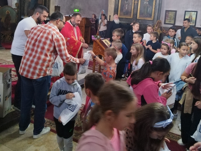 Након молебна, присутној деци подељени су пригодни пакетићи са школским прибором, дечјим молитвеницима, крстићима, иконицама и бројаницама.